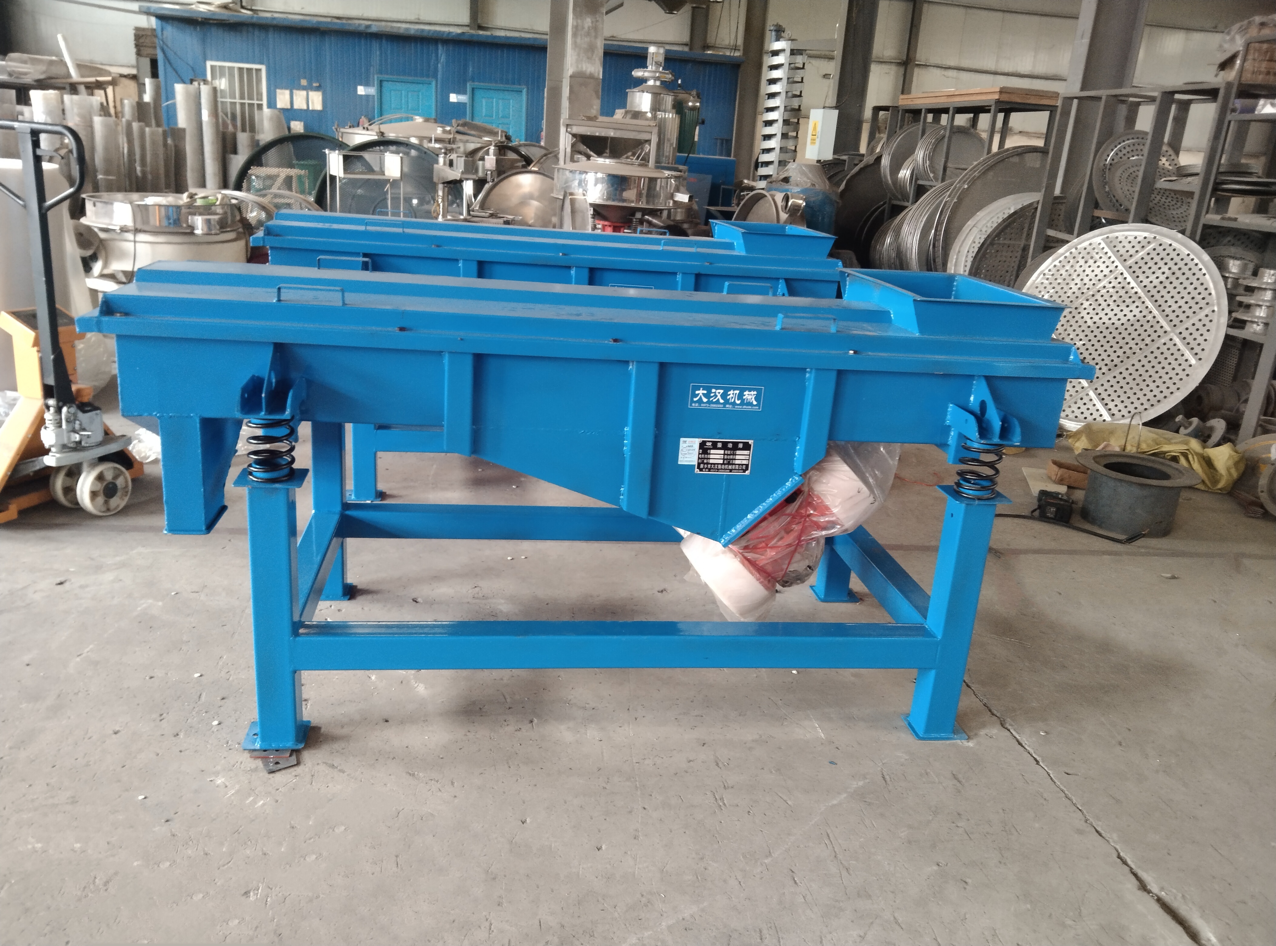 小型直線振動篩:采用雙振動電機驅動,篩面寬度支持定制,處理量大且適合連續作業,適用于塑料顆粒、金屬粉末及小顆粒糧食的篩分。