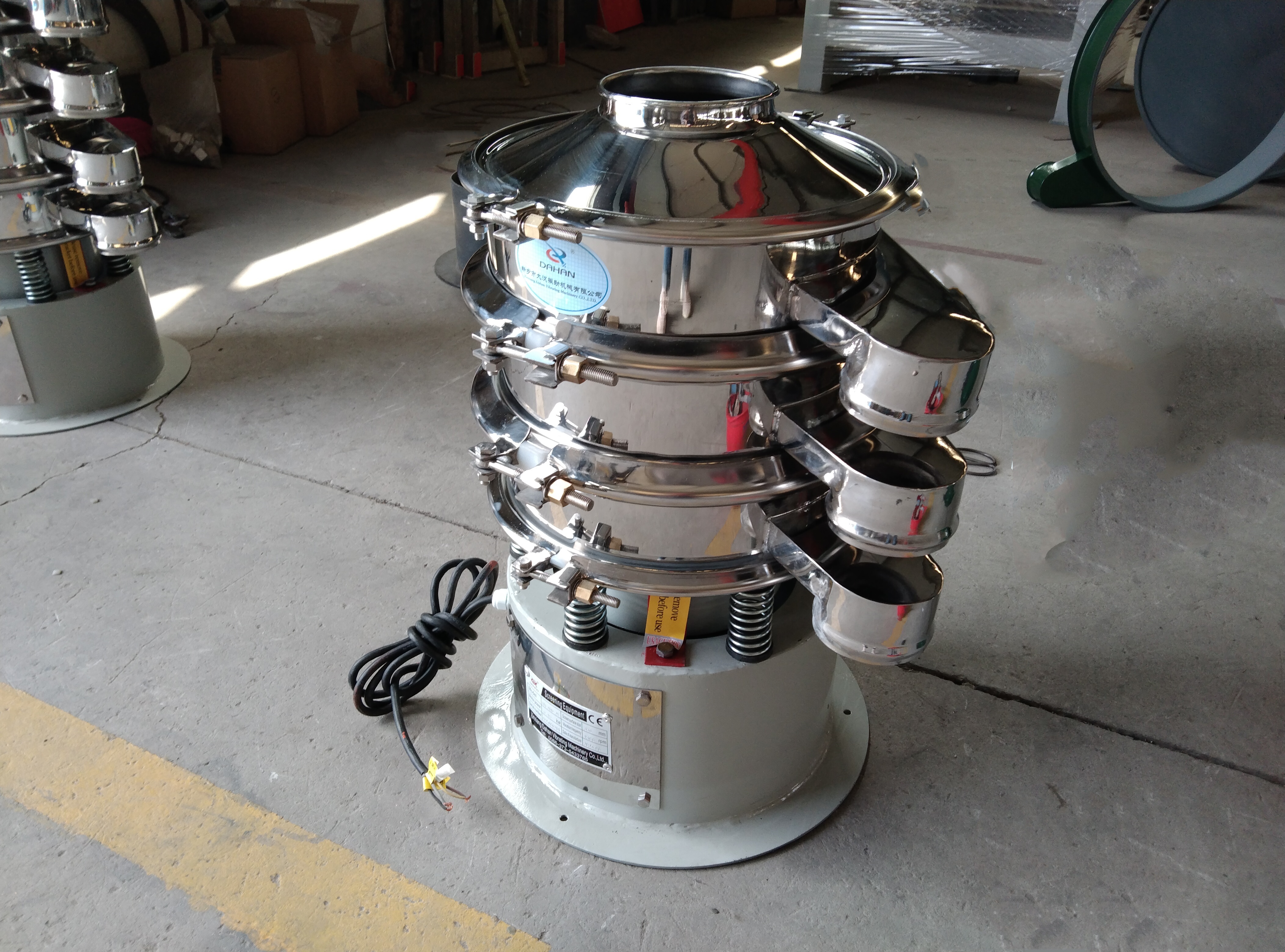 小型旋振篩:通過立式電機產生三維橢圓運動,全密閉結構防塵且換網便捷,可配置1-6層篩網,專用于食品、醫藥、化工等行業的精細篩分。