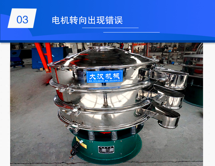 解決方法:檢查并矯正漿液振動篩振動電機的轉向是否正確。首先卸下振動電機的護罩,檢查兩個電機的偏心塊旋向是否均向外側旋轉;其次,如果轉向錯誤,請調換電控箱進線電源中的任意兩根相線。