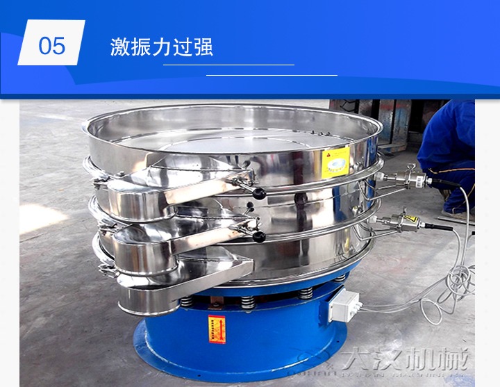 振動電機的激振力過強,漿液進入篩面上因受到的激振力過大,就會出現物料上跳的現象。